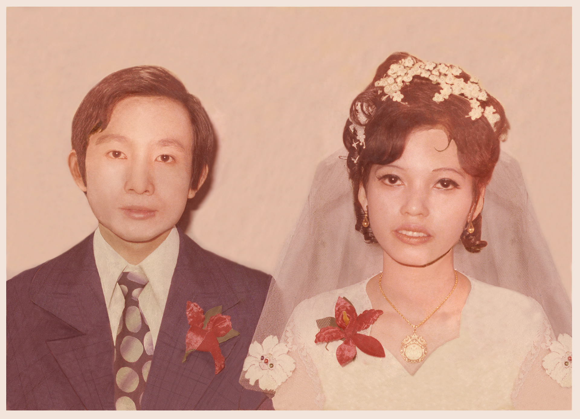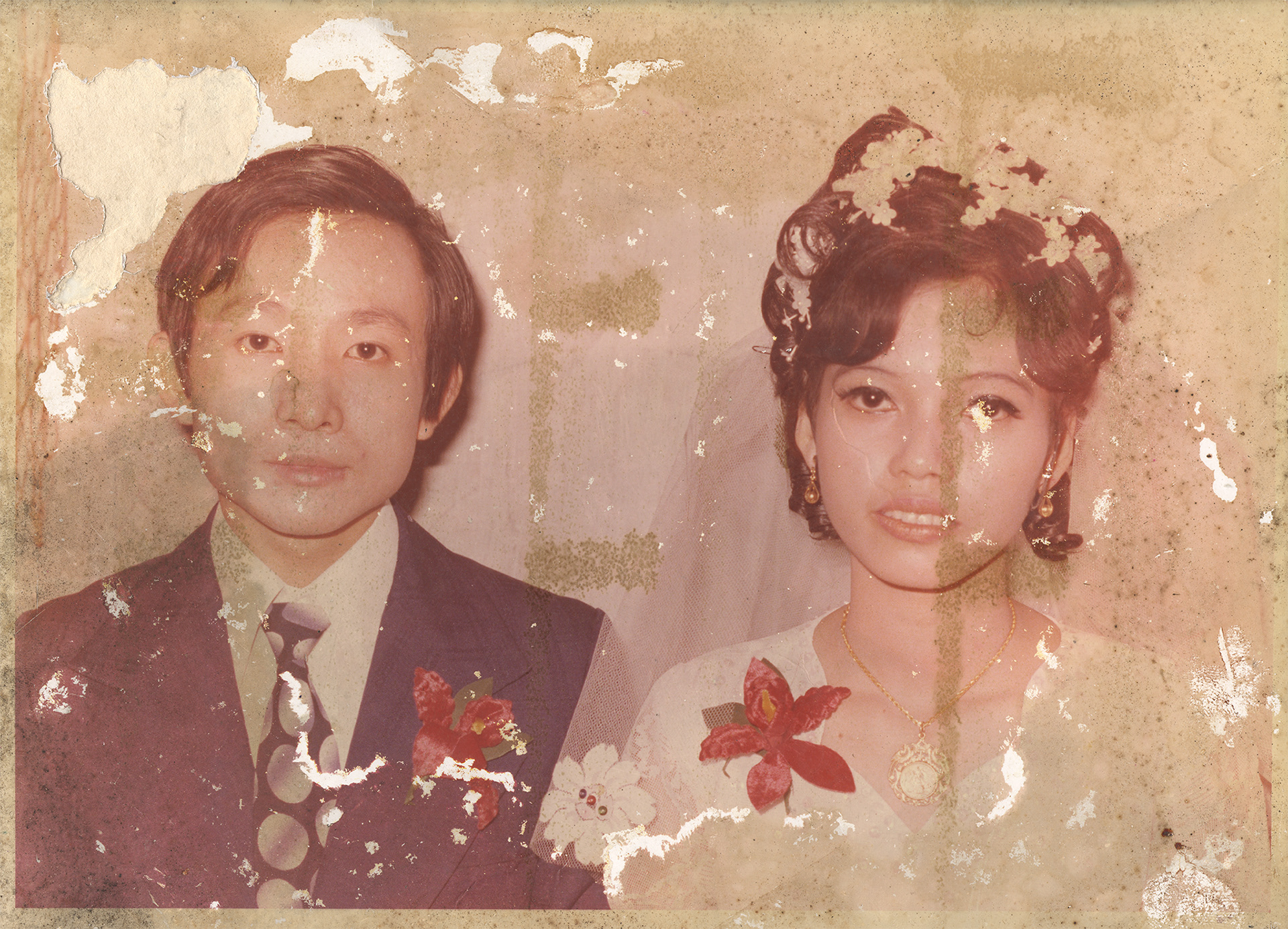 難得有機會好好的來修一張照片,這是朋友的父母親結婚舊照片,圖中可以看出已經破損的有點嚴重以及發霉